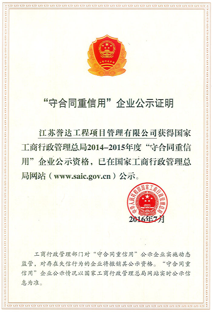 我公司成立于1996年,注冊資金6000萬元,公司有關(guān)資質(zhì)為:工程造價咨詢甲級,房屋建筑工程監(jiān)理甲級,市政公用工程監(jiān)理甲級,人防工程監(jiān)理甲級,電力工程監(jiān)理乙級,水利水電工程監(jiān)理乙級,公路工程監(jiān)理乙級,文物保護(hù)監(jiān)理乙級,招標(biāo)代理資質(zhì)、政府采購代理資質(zhì),工程咨詢資質(zhì)。公司于1999年被江蘇省建設(shè)廳命名為省級先進(jìn)監(jiān)理企業(yè)、2005年及2009年獲江蘇省建設(shè)廳優(yōu)秀監(jiān)理企業(yè),2008年獲江蘇省監(jiān)理協(xié)會“建設(shè)監(jiān)理發(fā)展二十周年工程監(jiān)理先進(jìn)企業(yè)”,2009年及2014年3月獲泰州市建設(shè)局“建設(shè)工程監(jiān)理工作先進(jìn)單位”。2001年至2012年連續(xù)十二年獲泰州市重合同守信用企業(yè)。 [ 查看詳情 ]